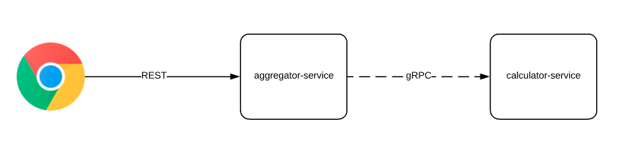 - Send a request to aggregator service as shown here. The request is forwarded to the Calculator service which would be a RPC and aggregator service receives the response which in turn sent back to the client.