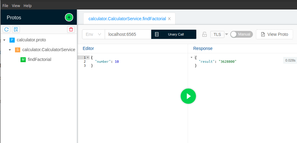 - Success response: We find the factorial for the given number and we respond back using responseObserver. We return the result Output object via onNext method to the calling client and we also notify the client that server job is done for this call by an onCompleted call.