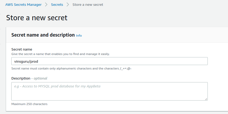 - Give a name for the secrets