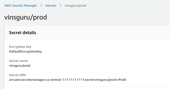 aws secretsmanager --region ca-central-1 get-secret-value --secret-id vinsguru/prod | jq -r .SecretString > app.properties
