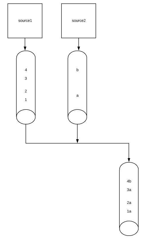 Here the output stops after source1 emits 4 even though source2 keeps emitting data after that.