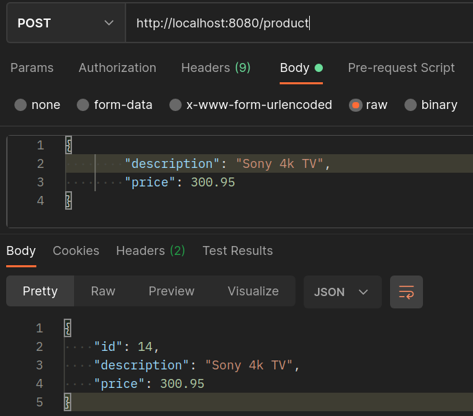 For ex: Sending a POST request with below request body /product endpoint creates a new record in the DB.