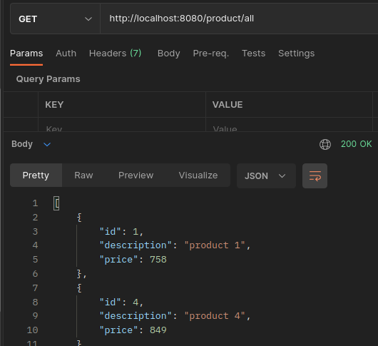 We can test our APIs. I am able to get all the 100 products (It is not sorted. But it is ok). I also ensured that POST / PUT / DELETE operations work.